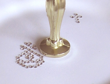 Cake stand, primer, Swarovski crystals. Velvet cushion, tassles.
