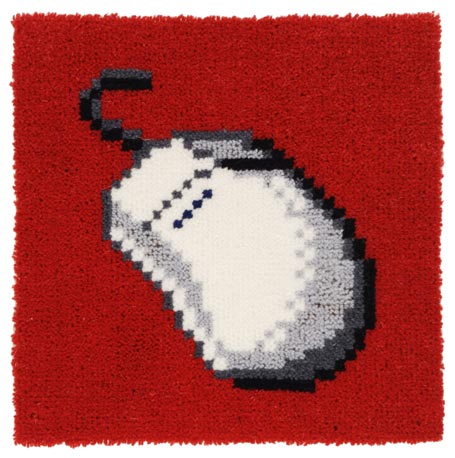 Mouse Mat (Red) 31/07/2007 Hand-tufted section of carpet depicting a computer mouse mat. 30.5 x 30.5cm 100% wool, hessian, silicone |