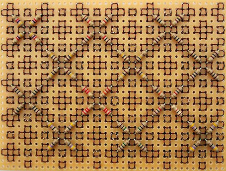 Strip board, metallic threads, resistors