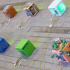 Cardboard Network 2003 Exhibited: Modulate Blowback Launch Flux | The Cardboard Network comprises a series of units linked together via electrical cables that also power the network.